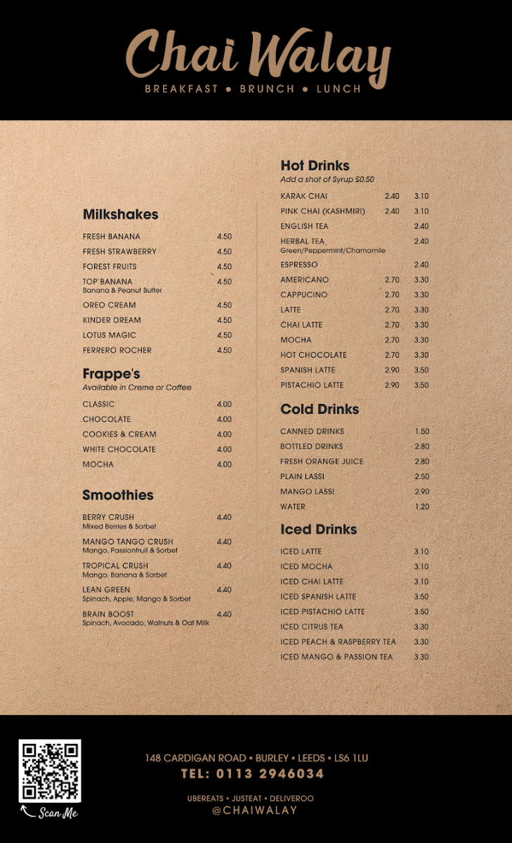 Chai Walay (Cardigan Road) Menu (2025 Update)